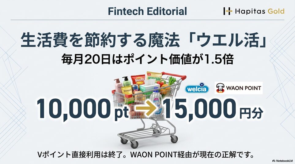 ※本ページはプロモーションが含まれていますブログ内検索 【ウエル活】Vポイント経由でハピタスポイントを1.5倍の価値に交換する方法 2026年1月17日 Twitter Share Pocket Hatena LINE URLコピー Twitter Share Pocket Hatena LINE URLコピーこの記事を書いた人 孔雀2004年にアフィリ業界に参入。 2017年から脱サラし、専業アフィリエイターに転職。 ほぼ独学でSEO、マーケティングを学び、2018年6月にアフィリエイトのみで月収50万円を達成。 誰にも縛られない自由な生活を求めて日々精進中。 最終目標は、何もせずに収入が入ってくる不労所得を作り出すこと。 -