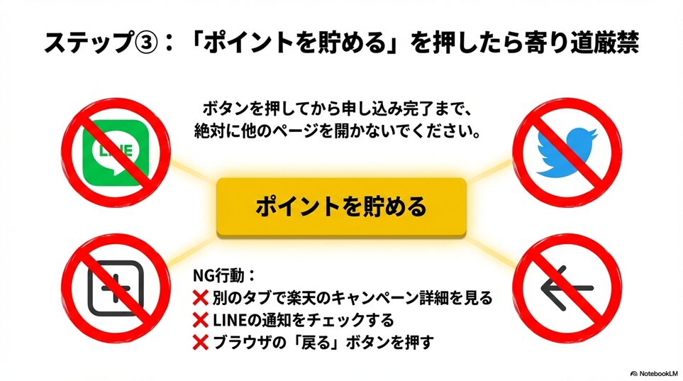 【ステップ③】「ポイントを貯める」ボタンを押してから寄り道厳禁