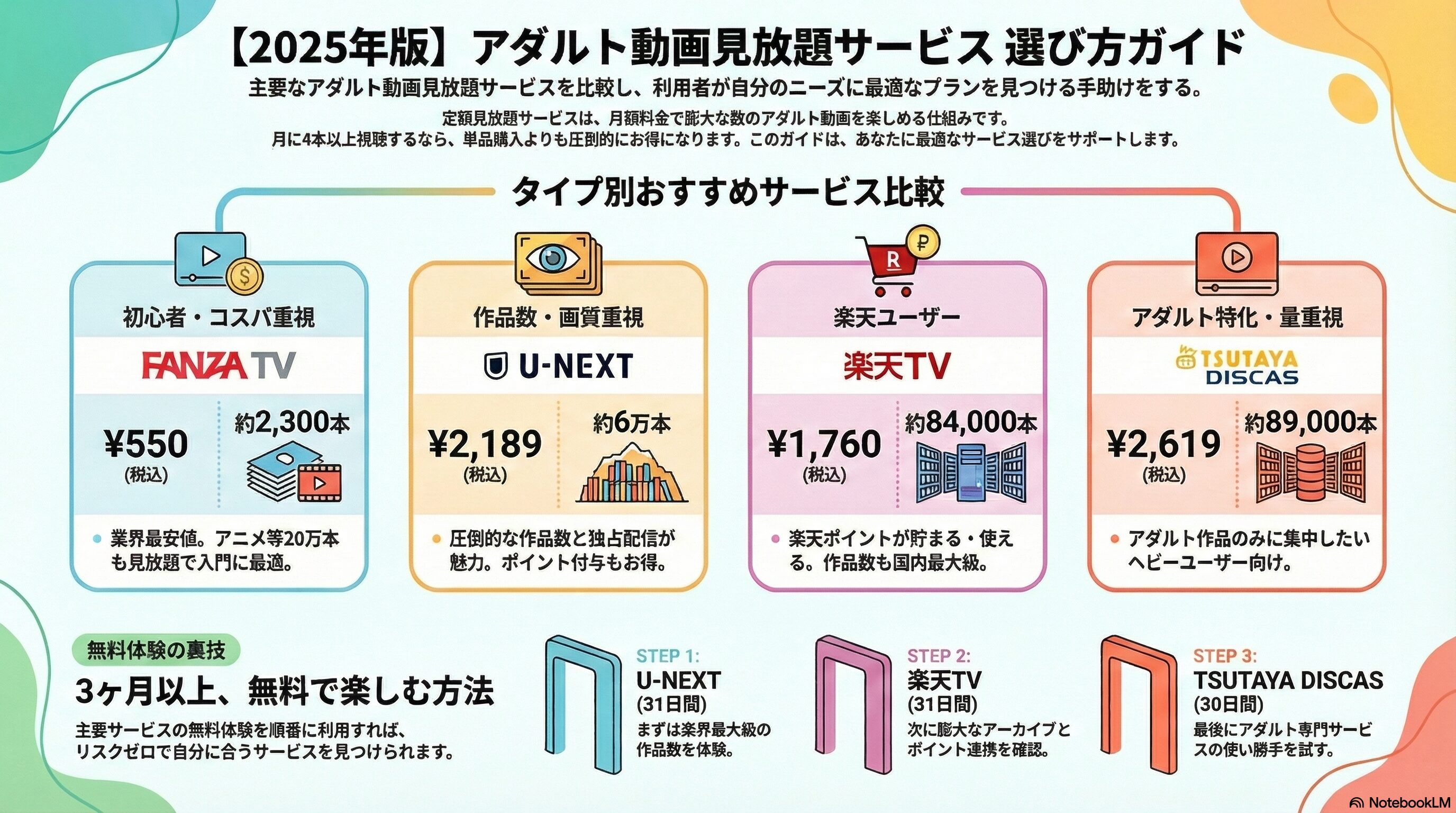 ※本ページはプロモーションが含まれていますブログ内検索 【2025年最新版】アダルト動画の定額見放題サービス完全ガイド|失敗しない選び方とおすすめランキング 2025年12月14日 Twitter Share Pocket Hatena LINE URLコピー Twitter Share Pocket Hatena LINE URLコピーこの記事を書いた人 孔雀2004年にアフィリ業界に参入。 2017年から脱サラし、専業アフィリエイターに転職。 ほぼ独学でSEO、マーケティングを学び、2018年6月にアフィリエイトのみで月収50万円を達成。 誰にも縛られない自由な生活を求めて日々精進中。 最終目標は、何もせずに収入が入ってくる不労所得を作り出すこと。 -