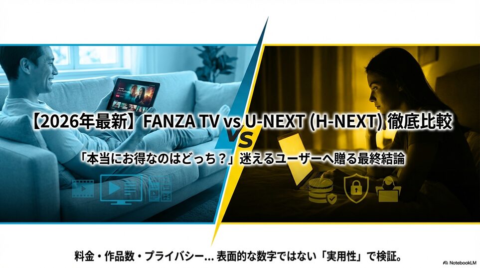 ※本ページはプロモーションが含まれていますブログ内検索 【2026年最新】FANZA TV vs U-NEXT(H-NEXT)徹底比較|本当にお得なのはどっち?2 2026年2月8日 Twitter Share Pocket Hatena LINE URLコピー Twitter Share Pocket Hatena LINE URLコピーこの記事を書いた人 孔雀2004年にアフィリ業界に参入。 2017年から脱サラし、専業アフィリエイターに転職。 ほぼ独学でSEO、マーケティングを学び、2018年6月にアフィリエイトのみで月収50万円を達成。 誰にも縛られない自由な生活を求めて日々精進中。 最終目標は、何もせずに収入が入ってくる不労所得を作り出すこと。 -