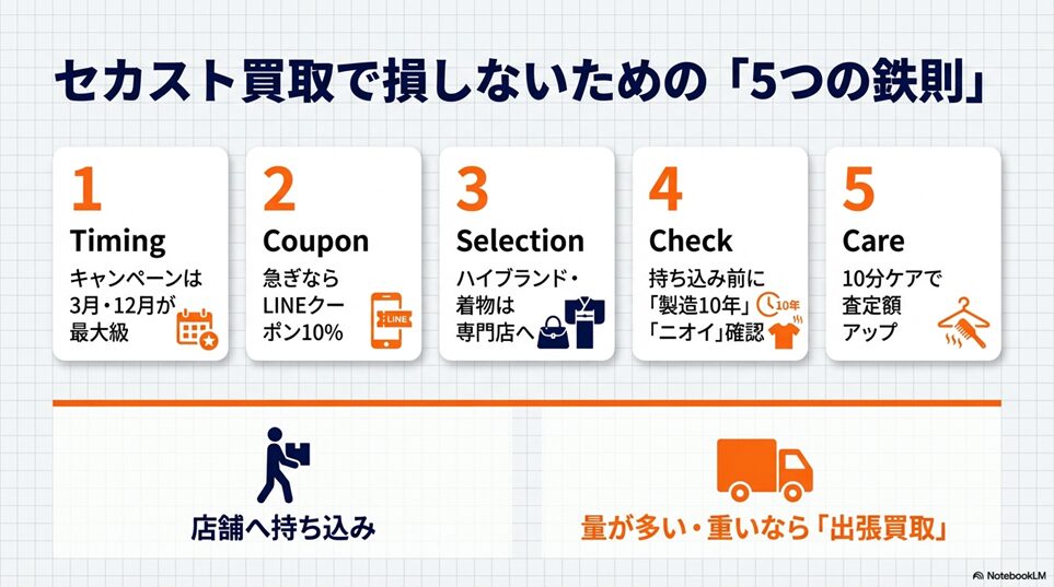 ※本ページはプロモーションが含まれていますブログ内検索 まとめ|セカンドストリートの買取で損しないための5つの鉄則 2026年1月27日 Twitter Share Pocket Hatena LINE URLコピー Twitter Share Pocket Hatena LINE URLコピーこの記事を書いた人 孔雀2004年にアフィリ業界に参入。 2017年から脱サラし、専業アフィリエイターに転職。 ほぼ独学でSEO、マーケティングを学び、2018年6月にアフィリエイトのみで月収50万円を達成。 誰にも縛られない自由な生活を求めて日々精進中。 最終目標は、何もせずに収入が入ってくる不労所得を作り出すこと。 -