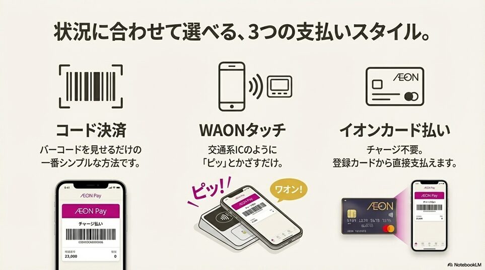 ※本ページはプロモーションが含まれていますブログ内検索 イオンペイの使い方・レジでの支払い方法2 2026年1月10日 Twitter Share Pocket Hatena LINE URLコピー Twitter Share Pocket Hatena LINE URLコピーこの記事を書いた人 孔雀2004年にアフィリ業界に参入。 2017年から脱サラし、専業アフィリエイターに転職。 ほぼ独学でSEO、マーケティングを学び、2018年6月にアフィリエイトのみで月収50万円を達成。 誰にも縛られない自由な生活を求めて日々精進中。 最終目標は、何もせずに収入が入ってくる不労所得を作り出すこと。 -