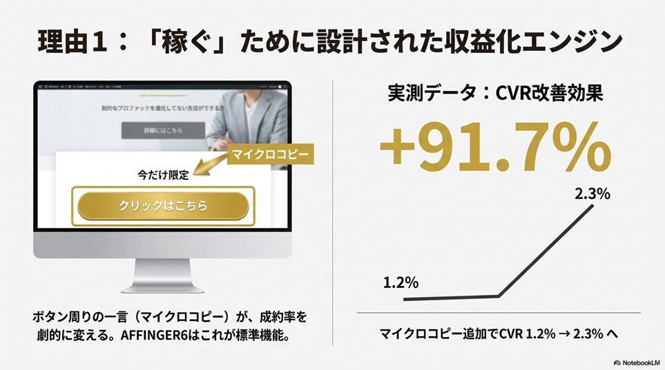 ※本ページはプロモーションが含まれていますブログ内検索 理由1:「稼ぐ」ことに特化した圧倒的な収益化機能 2025年12月28日 Twitter Share Pocket Hatena LINE URLコピー Twitter Share Pocket Hatena LINE URLコピーこの記事を書いた人 孔雀2004年にアフィリ業界に参入。 2017年から脱サラし、専業アフィリエイターに転職。 ほぼ独学でSEO、マーケティングを学び、2018年6月にアフィリエイトのみで月収50万円を達成。 誰にも縛られない自由な生活を求めて日々精進中。 最終目標は、何もせずに収入が入ってくる不労所得を作り出すこと。 -