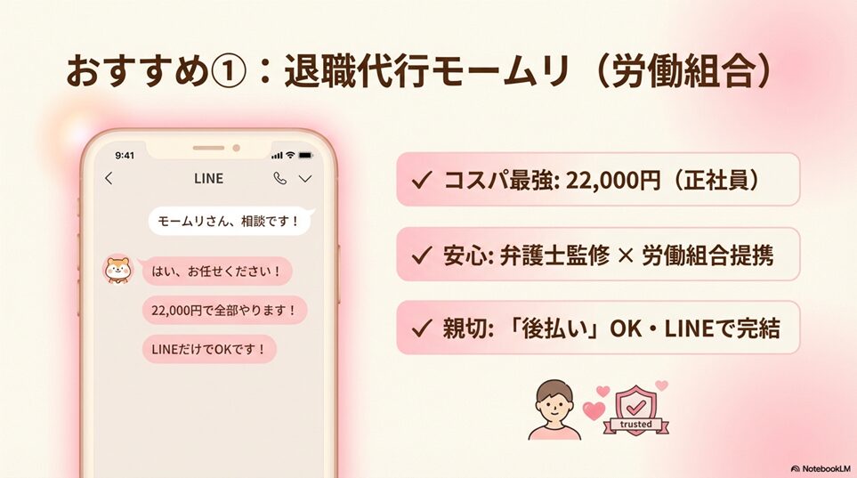 ※本ページはプロモーションが含まれていますブログ内検索 退職代行モームリ(労働組合運営) 2026年1月12日 Twitter Share Pocket Hatena LINE URLコピー Twitter Share Pocket Hatena LINE URLコピーこの記事を書いた人 孔雀2004年にアフィリ業界に参入。 2017年から脱サラし、専業アフィリエイターに転職。 ほぼ独学でSEO、マーケティングを学び、2018年6月にアフィリエイトのみで月収50万円を達成。 誰にも縛られない自由な生活を求めて日々精進中。 最終目標は、何もせずに収入が入ってくる不労所得を作り出すこと。 -