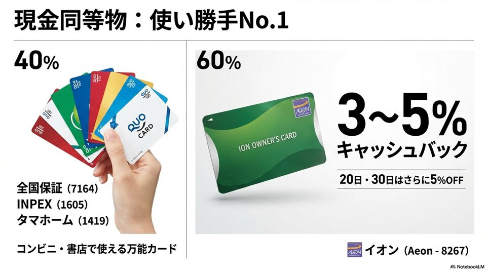 ※本ページはプロモーションが含まれていますブログ内検索 金券・ギフトカード系株主優待おすすめ(汎用性No.1) 2026年1月10日 Twitter Share Pocket Hatena LINE URLコピー Twitter Share Pocket Hatena LINE URLコピーこの記事を書いた人 孔雀2004年にアフィリ業界に参入。 2017年から脱サラし、専業アフィリエイターに転職。 ほぼ独学でSEO、マーケティングを学び、2018年6月にアフィリエイトのみで月収50万円を達成。 誰にも縛られない自由な生活を求めて日々精進中。 最終目標は、何もせずに収入が入ってくる不労所得を作り出すこと。 -