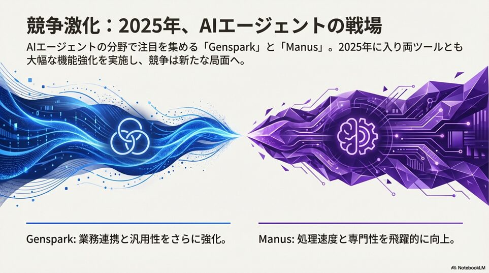 ※本ページはプロモーションが含まれていますブログ内検索 GensparkとManusの基本概要 2025年12月7日 Twitter Share Pocket Hatena LINE URLコピー Twitter Share Pocket Hatena LINE URLコピーこの記事を書いた人 孔雀2004年にアフィリ業界に参入。 2017年から脱サラし、専業アフィリエイターに転職。 ほぼ独学でSEO、マーケティングを学び、2018年6月にアフィリエイトのみで月収50万円を達成。 誰にも縛られない自由な生活を求めて日々精進中。 最終目標は、何もせずに収入が入ってくる不労所得を作り出すこと。 -