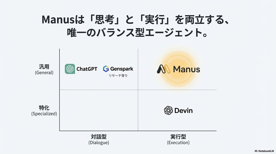 ManusとChatGPT・Devin・Gensparkの比較