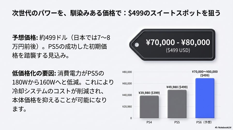 ※本ページはプロモーションが含まれていますブログ内検索 PS6(PlayStation6)の価格・値段はいくら?7万円台が有力か 2025年12月8日 Twitter Share Pocket Hatena LINE URLコピー Twitter Share Pocket Hatena LINE URLコピーこの記事を書いた人 孔雀2004年にアフィリ業界に参入。 2017年から脱サラし、専業アフィリエイターに転職。 ほぼ独学でSEO、マーケティングを学び、2018年6月にアフィリエイトのみで月収50万円を達成。 誰にも縛られない自由な生活を求めて日々精進中。 最終目標は、何もせずに収入が入ってくる不労所得を作り出すこと。 -